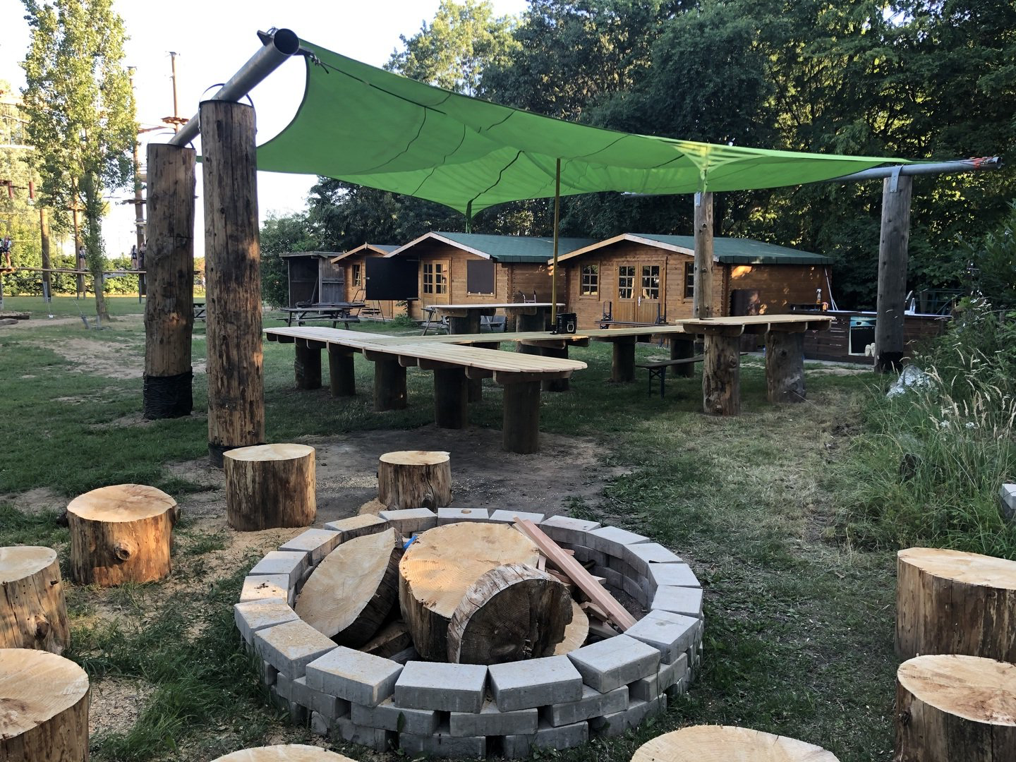 Nach Ihrer Ankunft und eventuellen Bezug der Hütte, lassen wir den Kindern normalerweise zunächst etwa 10 Minuten Zeit, sich umzusehen und anzukommen. In dieser Zeit können sie vielleicht etwas trinken oder einen Muffin genießen. Anschließend ziehen wir gemeinsam die Gurte an und verteilen die Sicherungen für die jeweiligen Parcours. Nach einer kurzen Erklärung der verschiedenen Seilgärten, die etwa 5 Minuten dauert, dürfen die Kinder mit dem Klettern beginnen. Die Parcours werden von uns überwacht, und wir sind immer in der Nähe, falls es Schwierigkeiten geben sollte. Jeder Parcours kann mehrmals durchlaufen werden, und die Kinder können zwischendurch Pausen zum Essen oder Trinken machen. In dieser Zeit können die Eltern Vorbereitungen treffen oder sich um den Grill kümmern.
